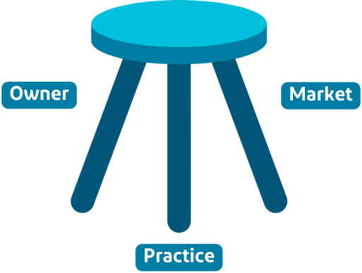 When practice owners wonder about the ‘optimal’ time for them to consider a sale, we use the analogy of a three-legged stool. When all three legs are strong, great outcomes are achievable. Think of these as the legs: 1) the individual owner, 2) the practice and 3) the market.