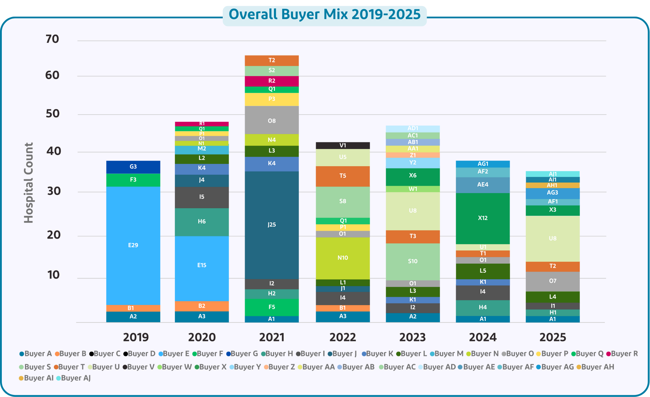 From our perspective, a key market data point is the variety of buyers that are still active. Ackerman Group has closed deals with 14 different buyers for the 34 U.S hospitals that we sold in the 9 Months of 2025 (graph below includes 1 Canadian Hospital). The interest in veterinary hospitals is not driven by a few large buyers but rather a wide range of active buyers are driving high valuations. Smaller / mid-sized buyers are bidding aggressively for hospitals that fit their investment criteria.