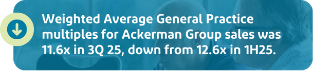 Practice valuations improved during a strong 1H25, but softened slightly in the 3rd Quarter. However, some dynamics lead us to question the extent of this softness: